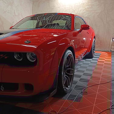 Detailing et traitement céramique sur cette Dodge Challenger proche de Clermont Ferrand avec Phoenix'Auto 63